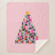 A cute Christmas tree in pink, featuring abstract shapes with a mid century modern design. A festive and modern design for the Christmas season.