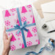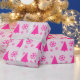 Pink Christmas Tree Snowflakes Wrapping Paper