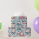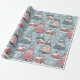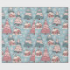A Pink House And Christmas Tree Wrapping Paper On Pastel Blue With Snowflakes