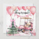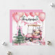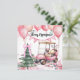 Pink Christmas with golf cart for golfer Holiday Card