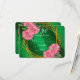 A delicate watercolor illustration featuring a gold geometric frame set against an emerald green background. The frame is adorned with vibrant hot pink chrysanthemums placed along the outer edges. The entire design has a soft watercolor texture, blending elegance with a natural floral touch.