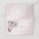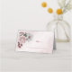 Beautiful botanical place card featuring romantic pink, white and cinnamon rose/ chianti flowers with green leaves.