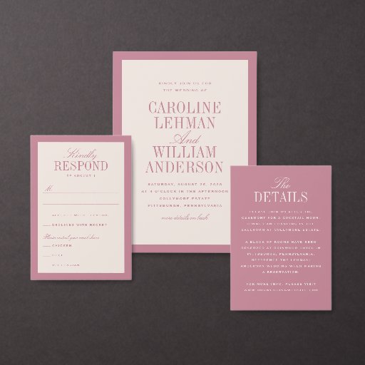 Invite friends and family to your wedding with this classic, elegant invitation in pink and cream colours.