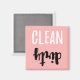 This magnet for your dishwasher lets your whole family know whether the dishes inside are clean or dirty. The words, facing opposite directions, are in two attractive brush (brushstroke) fonts: "CLEAN" in white capital print block letters, and "dirty" in black lowercase script (cursive). The background, a beautiful pastel pink colour, is perfect for any kitchen decor.