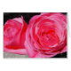 The original photograph on this Greeting Card is a close up of two bright pink climbing roses, fresh from the garden. The rose petals, in light and shadow, are many shades of pink, from pale to hot pink, and deep pink. One rose faces us directly, showing the tips of the petals as they curve around to the centre. The other rose, beside and slightly behind the first, is turned a little to the side. They are resting on a light textured grey surface, against a black background. The text on the inside can be personalised or deleted, as you like.