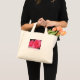 The original photograph by MaeFlowers on this Mini Tote Bag is a closeup of two bright pink climbing roses, fresh from the garden. The rose petals, in light and shadow, are many shades of pink, from pale to hot pink, and deep pink. One rose faces us directly, showing the tips of the petals as they curve around to the centre. The other rose, beside and slightly behind the first, is turned a little to the side. They are resting on a light textured grey surface, against a black background. The photo has a ragged edge. The text says "Everything's coming up roses!", but can be changed or deleted as you like.
