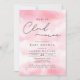 Celebrate the arrival of a little bundle of joy with this beautifully designed baby shower invitation. Featuring a soft pink watercolor background and elegant script typography, this invitation exudes warmth and sophistication. The delicate scriptdetail intertwined with the word "cloud nine" adds a charming touch, symbolising the love and excitement surrounding this special occasion. With a clean, modern layout, all essential details are clearly displayed, making it both stylish and easy to read. Perfect for a refined and heartfelt gathering, this invitation sets the tone for an unforgettable celebration honouring the mum-to-be.