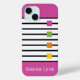 Communicate in style with this fun customisable iPhone case. Featuring pink colour blocking, black stripes, and colourful accent squares, this design is loaded with personality. Add a personal touch by adding a name at the bottom to create a unique tech accessory for women, teens, or girls who love contemporary design. Whether you’re treating yourself or gifting it to a friend, this case offers both protection and self-expression in one chic package.