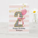 A pink and gold 2nd birthday girl card, which you can personalise with her name. The front of this beautiful 2nd birthday card for her features the number two in a black and white stripe with an outline of glitter with a pink coquette bow and a pink balloon ready to float way. Please note the gold glitter is a design effect and no actual glitter will be on this birthday card. The background is a soft white and pink with a soft gold bunting banner at the top.The inside message can be easily personalised if you wanted. A pretty 2nd birthday card keepsake for granddaughter, daughter, goddaughter, etc.