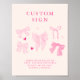 Cute custom sign for your child's bow theme birthday party! Features illustration of hand drawn coquette ribbons in pink.