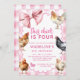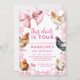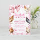 Pink Coquette Bow Boho Girl Chicken Birthday Party Invitation