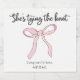 Add a sweet finishing touch to your bridal shower with our "She's Tying the Knot" Coquette Pink Bow wedding wine labels! Designed to perfectly complement our coordinating invitations, these stickers feature a delicate pink bow, creating a feminine and whimsical vibe. They’re the perfect detail to tie your shower theme together.
