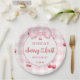 Pink Coquette Bow Cherry First Birthday Party Paper Plate