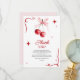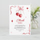 This coquette-inspired baby shower thank you card features two hand-painted watercolor cherries tied with a soft pink bow, framed by retro red starbursts and ribbon flourishes. A stylish way to send gratitude to family and friends, this card ties perfectly with the matching cherry baby shower invitation. The design combines a clean white background with elegant red typography, giving it a playful yet timeless look. Ideal for cherry-themed, girly, or coquette baby showers. All wording can be edited, making it easy to personalise your message of thanks.