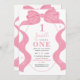 Pink Coquette Bow & Photo Ribbon 1st Girl Birthday Invitation