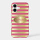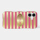 Pink Coral and Gold Stripes | Monogrammed