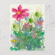 Pink Cosmos Nigella Flower Garden Watercolor Postcard