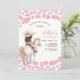 Saddle up for fun with this adorable pink western birthday party invitation! Featuring a little cowgirl in a cowboy hat riding a white horse, this design is perfect for a 2nd birthday celebration. The pink cow print border adds a playful touch, while customizable text makes it easy to personalize for your childs special day. A charming choice for western, farm, or rodeo-themed parties, this invitation blends rustic style with sweet girly flair.