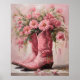 This image is a painting that features a pair of pink cowboy boots filled with various pink flowers against a light background. The painting has a vibrant and artistic style. 🌸