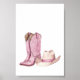 Pink Cowgirl Hat Boots Poster Kids Room Decor