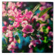 Pink and purple crab apple tree flowers in spring. The bloom and blossom season in the garden or orchard. Colourful vibrant botanical floral scene. Prints and gifts for fun and good mood