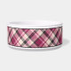 Lovely plaid pattern in pink, cream and dark grey colour scheme. There is also an oval shape banner that has a personalizable text area for the name of the pet. The font is a nice script font in dark grey colour.
