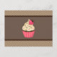 Pink Cream Brown Stripes Strawberry Cupcake Postcard