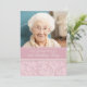 Custom photo 85th Birthday party invitations in elegant rose pink and off white floral and stripes pattern. Add your name, photo, and party details for a unique and stylish birthday party invitation.