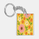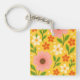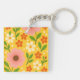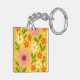 Pink, cream & Orange Flowers with Green Leaves Key Ring