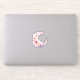 Contour sticker with a lovely illustration featuring a soft pink and purple crescent moon. Pretty pink and yellow wildflowers adorn this celestial body.