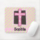 Pink Cross on Pink & Lime Green Stripes Mouse Pad