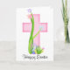 This design features a Pink Cross with Easter Eggs. The TEXT on front and inside can be customised.