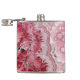 The flask itself is fine. It’s a cheap flask, obviously bought in bulk, however am prepared to overlook that. Given that it is a personalized item, I would have liked to have seen gift boxing instead of the generic packaging. Terrible printing, and/or quality. It’s a cheap, tacky vinyl. It is not cut straight and is also applied in a way that it is overhanging the bottom, causing the glue to catch on items and it will eventually roll and tear, damaging the wrap.