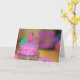 A Pink Cup Cake shot close up that's bright and colourful for a 1 Year Old . That's on a Birthday CARD.