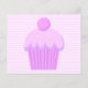 A pretty pink cupcake picture with a background of thin stripes in pastel pink. A girly style food themed design. This cake has icing and a sweet on top.