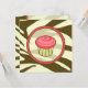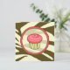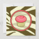 An invitation featuring a pink cupcake outlined in brown inside a matching pink and brown frame. Background is brown and beige zebra print. Opposite side features matching zebra print background with brown and pink text over sheer side. Personalise with details of your event.