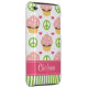 Personalise this cute chocolate cupcake iPod Touch 4 case and 4g cover for the 4th generation model with pink icing and sprinkles on a pink and green peace symbol and heart background. Artwork © Chrissy H. Studios, LLC. All Rights Reserved.