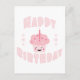 Cute kawaii style cupcake with sprinkles and a candle. Text reads, Happy Birthday.