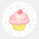 A fluffly pink cupcake decorates this sticker. The design is from an original watercolor.