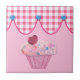 This Pink Cupcake Tile features a mouse drawn cupcake with a pink gingham and blue heart swag. Frame it or make it a Jewellery box!