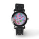 A pile of brightly coloured cupcakes decorated with marshmallows, chocolate stars, hearts, jelly sweets. sprinkles and glitter - ready to eat! Watch with a pink, blue, yellow, green, and red customisable design for you to personalise with your own text, pictures and ideas. Available in all style options. Image created from an original photograph stylised using digital techniques.