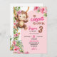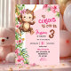 Pink Curious Monkey Savannah Theme Birthday Invitation