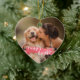 Pink Custom Dog Photo 2-sided Happy Pawlidays Heart Shaped Ceramic Ornament. Personalise it with a photo, name and year on both sides. ♥ If you want to change the font style, colour or text placement, click the "Customise Further" button. You can also change the background colour to match your photos. ♥ If you need assistance or have any special request on this design or any other ones in my stores, please always feel free to contact me via the "CONTACT SELLER" and I’m happy to help you! ♥ ♥