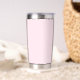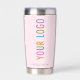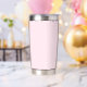 Personalise our 20 oz stainless steel tumbler with your company logo, tagline, recipient name, or other custom text. This insulated tumbler is designed for hot or cold drinks with a leak resistant lid. Designed in light pink and other colours (all colours are customisable). No minimum order quantity and no setup fee.