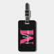 Create Your Own Stylish Modern Custom World Traveller Girly Black and Hot Pink Name Monogram Luggage Tag. This bold and chic luggage tag adds a fun and personalised touch to any travel adventure, perfect for the world traveller or anyone who loves a little glam on the go. The front features a hot pink magenta serif initial set against a sleek black background, with your name in white handwritten script layered across the centre for a modern, girly vibe. The back has a matching black background with white text, featuring the phrase “This bag belongs to” in a script font. Your name is highlighted in hot pink, while the rest of the contact info is shown in white serif and script fonts for a stylish contrast. All colours can be customised, so you can change the background, monogram, font, or text colour to match your personal style. This custom luggage tag makes a fun and practical gift for a girly girl, sorority sister, mum, or travel lover—great for birthdays, holidays, or just because.