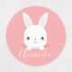 This design features cute little white bunny rabbit on pink background with personalised name in modern script font style.