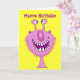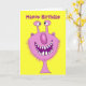 This customisable birthday card template has a cute pink monster with a beard on the front. It says, "Happy Birthday."