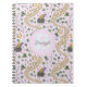 Custom adorable Pink Cute n' Curvy St Patricks Day Shamrocks Name notebook - hand-drawn by Nathalie Portet. This delightful & girly personalised notebook features a playful mix of Irish imagery including clovers, shamrock gold coins, a pot of gold at the end of a rainbow, and a charming leprechaun hat. The design is adorned with the heartwarming message, "Wishing you endless luck and joy!" The pattern's unique curvy style, created by the falling coins in an S design, adds an extra element of fun and whimsy.
