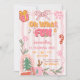 Pink Cute Retro Christmas Winter 1st Birthday Invitation, Oh What Fun Girl Birthday Invite, Editable Pink Coquette Bow Birthday