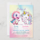 Pink Cute Unicorn dinosaurs rainbow Birthday party Invitation